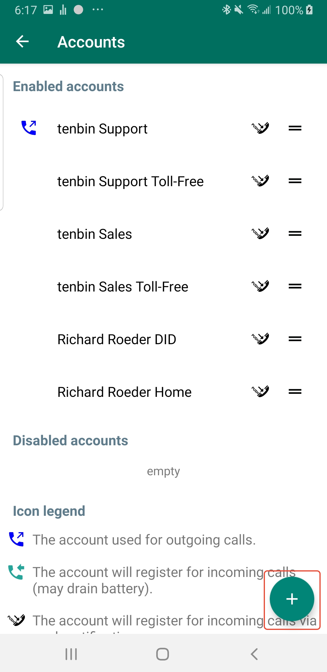 STEP 5: Tap the green "+" button in the bottom right corner to add a new account.