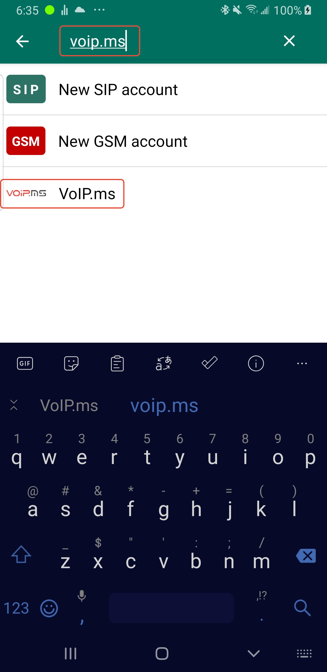 STEP 7: Type voip.ms in the Search box, and tap voip.ms in the results below.