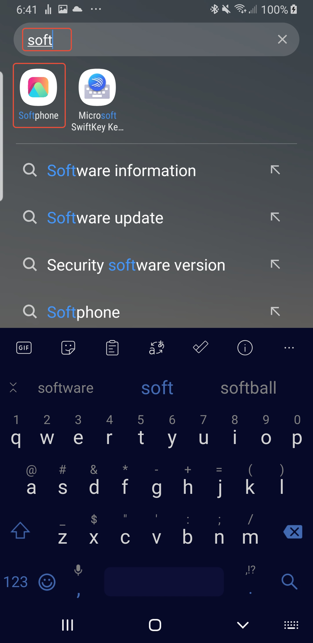 For Android Users: Go to your phone's "Finder Search" and type "soft", then click the "Softphone" icon.